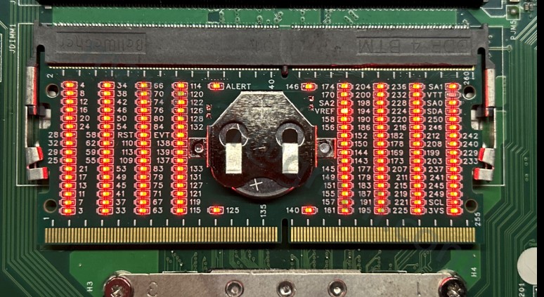 Для выявления неполадок связи не только с ЦП, но и в целом с платой - задействованы все выводы, которые не имеют дубляжей. Всё, что обозначено номерами - контактирует только с ЦП. Всё, что обозначено именем - индивидуально. Например: SA0,1,2 - это конфигурационные выводы для SPD, задают адрес, чтоб PCH\SoC понимал, в каком слоте присутствует память и можно ли задействовать канал. VTT может иметь высокое падение и тускло светить. Alert у Intel зачастую не задействован. и тд. Мастер должен сам понимать, что у него в руках лишь индикатор, а не диагностирующее устройство.